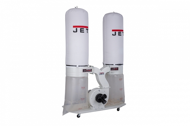 Jet DC-1900A — высокопроизводительная вытяжная установка со сдвоенными фильтрами и накопителями, поставляется с трёхфазным двигателем большой мощности. Разветвитель аспирационного патрубка позволяет подключать при помощи 100-миллиметровых рукавов до трёх точек пылесбора или, если требуется, один единственный рукав диаметром 150 или 200 мм. «Улитка» и крыльчатка выполнены из стали и не боятся повреждений сучками или щепой, которые попадаются в отходах деревообработки.
