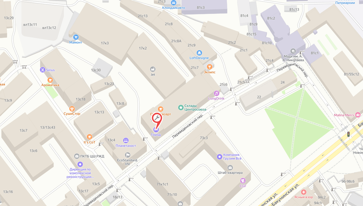 От станции метро «Бауманская» пешком около 15 минут (1,2 км) или 3 короткие остановки автобусом либо троллейбусом (остановка «Бакунинская улица, 84»).